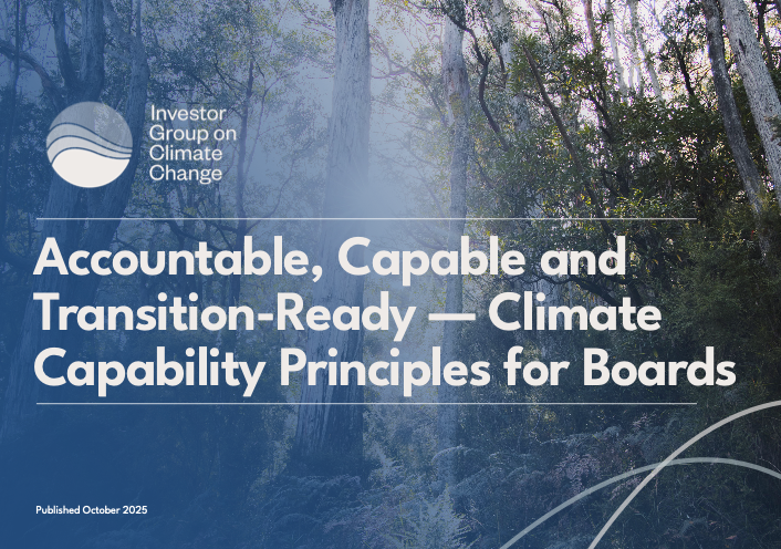 IGCC’s Climate Capability for Boards report sets out what good climate governance looks like — and how investors can assess and engage company boards on transition readiness. It identifies five principles for effective oversight and provides practical tools to guide investor engagement.